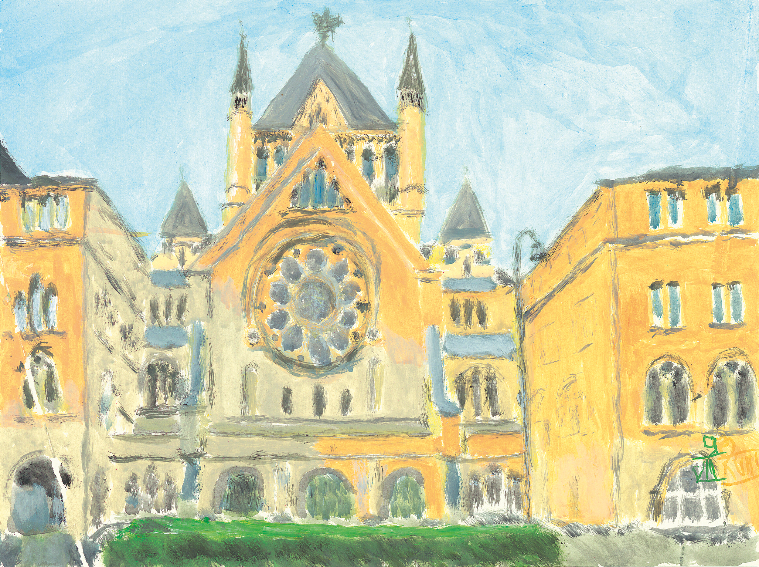 Der Sturz vom Baum, der sein Leben von den Füßen auf den Kopf stellte, ist nun sechs Jahre her. Der Kölner HNO-Arzt Dr. Dr. Rainer Broicher ist seitdem hoch querschnittsgelähmt. Als Broicher auf der Intensivstation erwacht und realisiert, dass sich sein Leben fundamental verändern wird, dass er seine Beine und auch seine Arme nicht mehr bewegen können wird, da kreisen die Gedanken um die Familie und wie es in der Katastrophe weitergehen kann. „Auch unter diesem Aspekt“, blickt der Vater von drei Töchtern im Gespräch mit dem RÄ zurück, „war das Malen für mich eine Möglichkeit, das, was ich mir vorgenommen hatte, auch zu realisieren, nämlich meiner Familie weiter ein Auskommen zu bieten.“ Seine ersten Pinselstriche mit dem Mund macht Broicher während seiner Frühreha in der BG-Klinik Murnau im Landkreis Garmisch-Partenkirchen. Eines der ersten Motive ist ein Rettungshubschrauber, von denen viele die Klinik täglich ansteuern. Mit der Malerei trainiert Broicher nicht nur seine Feinmotorik, er bekämpft auch die bohrende Langeweile, die sich einstellt, wenn die tägliche Therapie nach zwei oder drei Stunden vorbei ist. Anfangs malt er „unter Aufsicht“, wie er sagt – auch um es nicht zu übertreiben. „Ich kann gar nicht sagen, ob ich mit den Händen ebenso gut malen würde“, sagt Broicher, „ich hatte früher neben dem Beruf einfach keine Zeit dafür. Und die wenige Freizeit habe ich im Garten und mit meiner Familie verbracht.“ Das Malen vertreibt ein wenig die Zeit, die er nun im Überfluss hat.