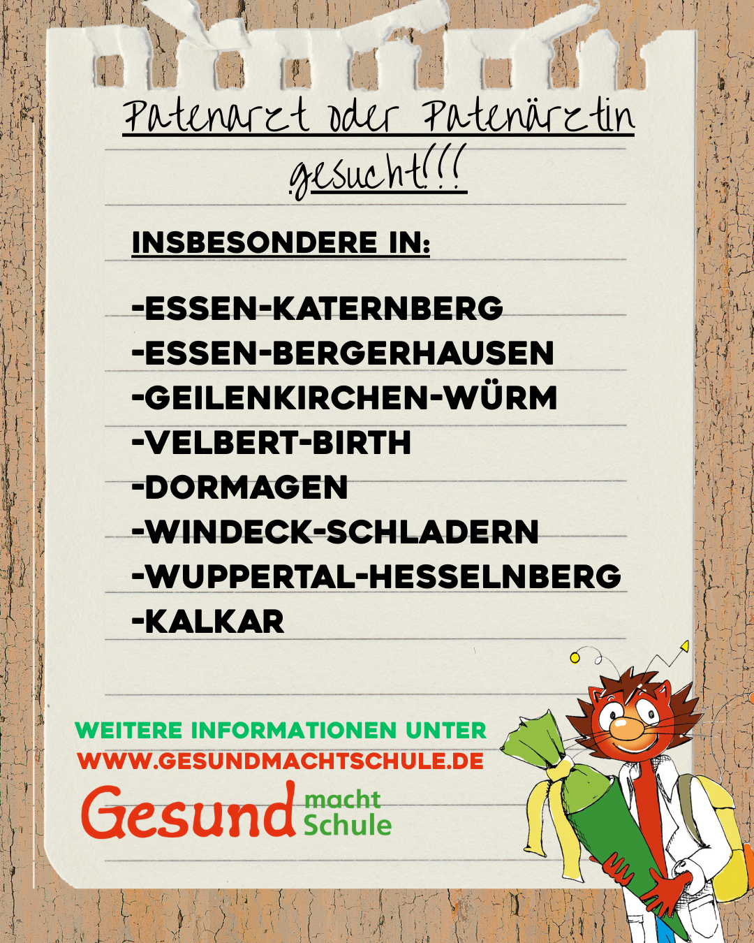 Bei Interesse an einer Teilnahme als Patenärztin oder Patenarzt finden Sie weitere Informationen unter: www.gesundmachtschule.de/aerzte/teilnahme-am-programm