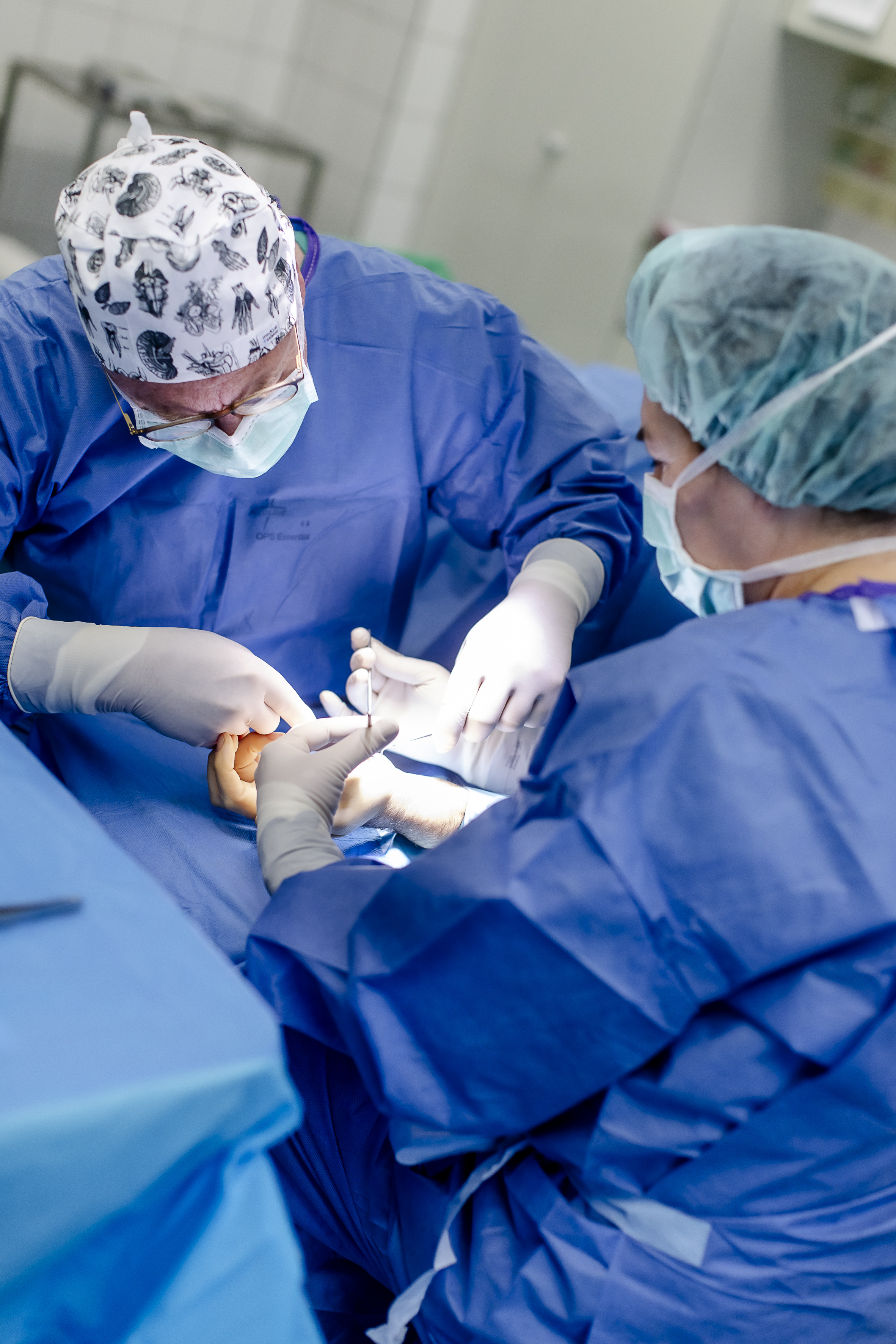 Manfred Weisweiler steht vor der roten Linie zwischen dem Türrahmen. Sie markiert den Übergang zum OP-Bereich. Sterile Zone, Zutritt nur mit OP-Kleidung. Die Abläufe sind für den erfahrenen Chirurgen absolute Routine. Der Patient im OP ist bereits in Vollnarkose, als Weisweiler den Raum betritt. Alles ist vorbereitet. Das Team ist eingespielt. Die Timings sitzen. Weisweiler muss nur noch das Skalpell ansetzen, gekonnter Schnitt an der Handfläche. „Karpaltunnelsyndrom, ein häufiger Eingriff bei uns“, erklärt der Fachmann. Zwischendurch wird gescherzt. Die Atmosphäre ist familiär. Ein weiteres Plus für gute Zusammenarbeit.