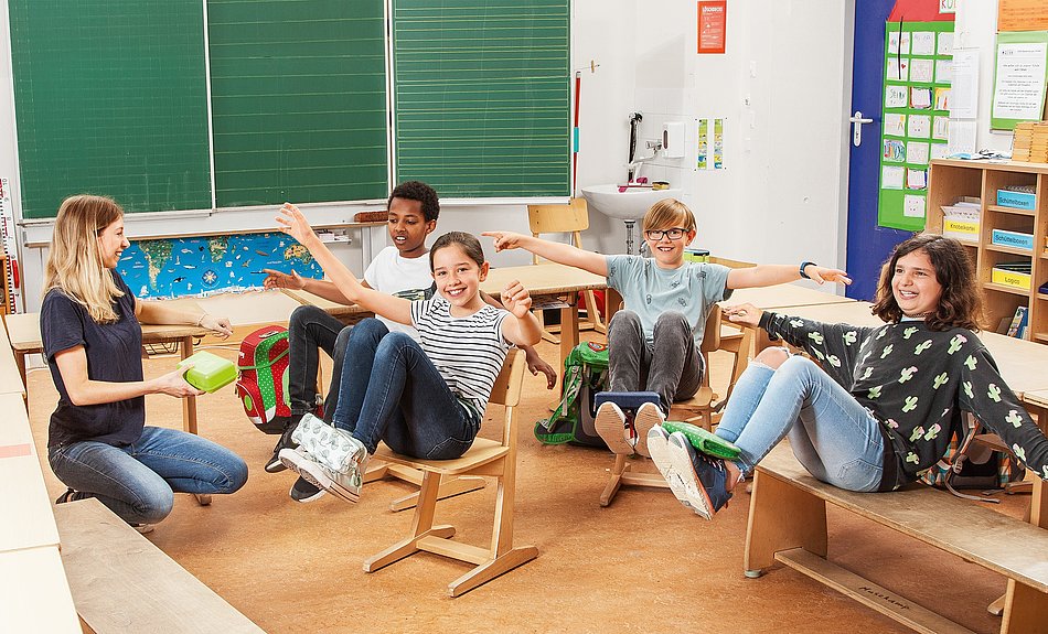 Das Praxismaterial „Hier bewegt sich was! Praktische Anregungen für eine bewegungsfreudige Schule“ wurde von Uta Lindemann, Sportwissenschaftlerin an der Universität Bielefeld, als Kartenbox konzipiert und bietet Spiel- und Übungsideen zum bewegten Schulalltag, die sich schnell und unkompliziert in Unterricht und Ganztag integrieren lassen. Dazu zählen Anleitungen zu Bewegungs- und Entspannungspausen, Anregungen für den bewegten Fachunterricht in Fächern wie Mathematik und Deutsch, Ideen für Pausenspiele sowie erlebnispädagogische Spiele für Projekt- und Wandertage.